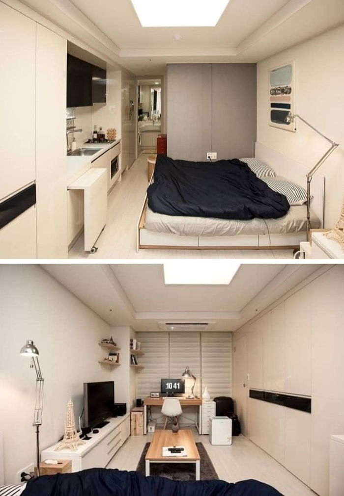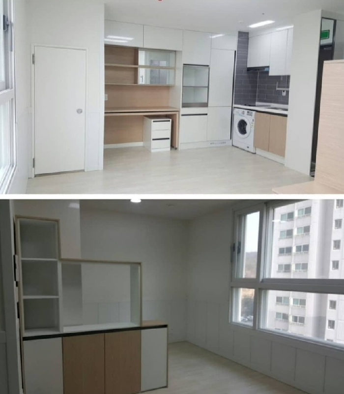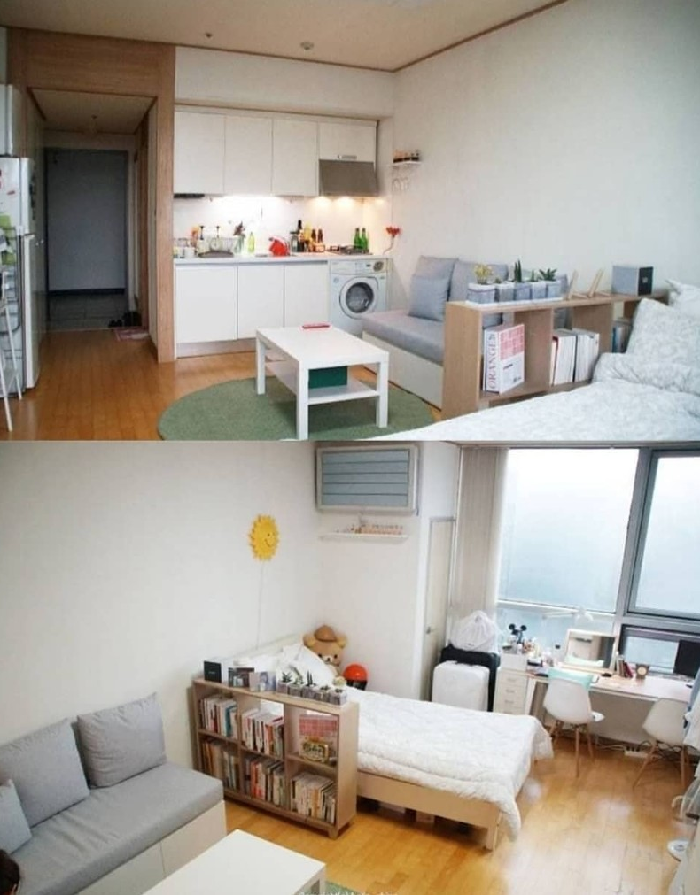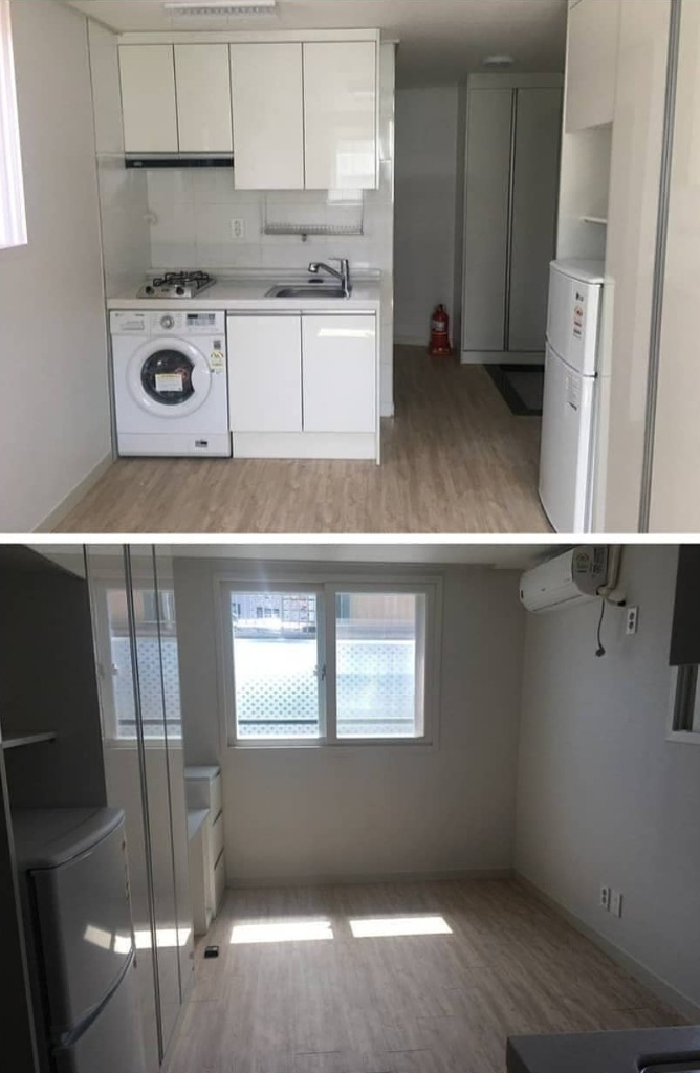 반면 5평 원룸은 화장실, 부엌, 방 구조로 이루어져 있다. 다소 답답해 보일 순 있지만 수납공간이 있어 실용적으로 보인다.