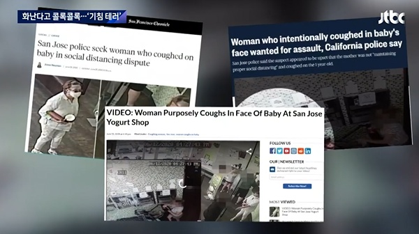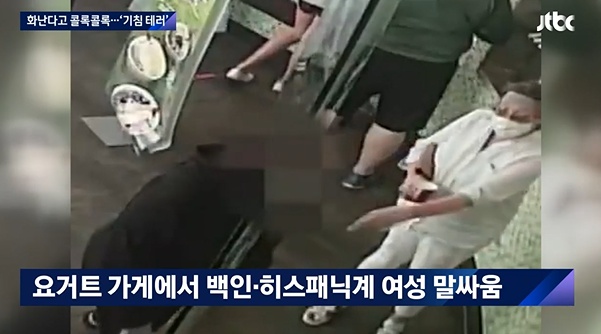 24일 JTBC 뉴스는 미국 캘리포니아주 새너제이에 있는 한 요거트 가게의 CCTV 영상을 공개했다.