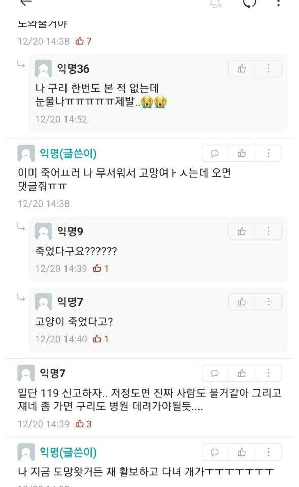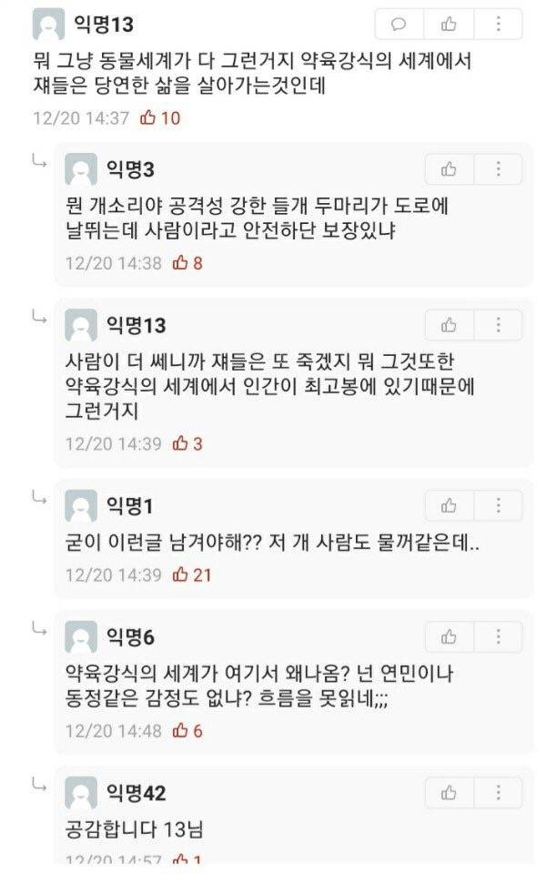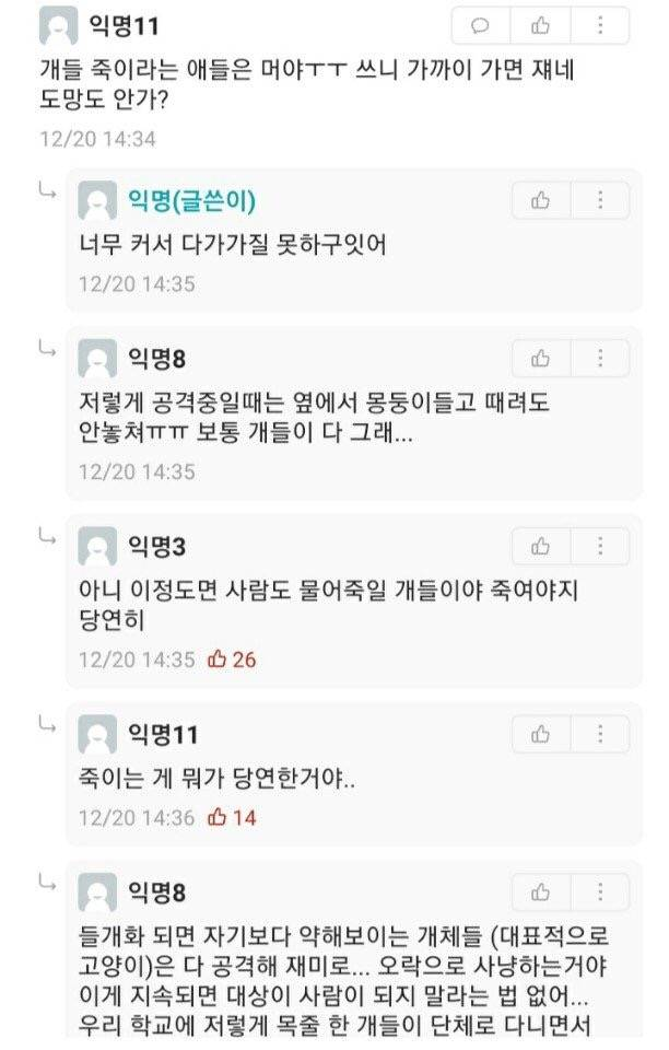 이후엔 고양이를 죽이고 활보하는 개를 피해 도망을 쳤다고 한다.