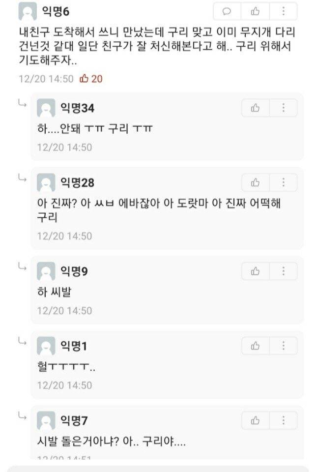 게시글 작성자 A씨는 “구리 어떡하냐. 애가 거의 아작난다. 물 주러 왔는데 어떡하냐”고 물었다.