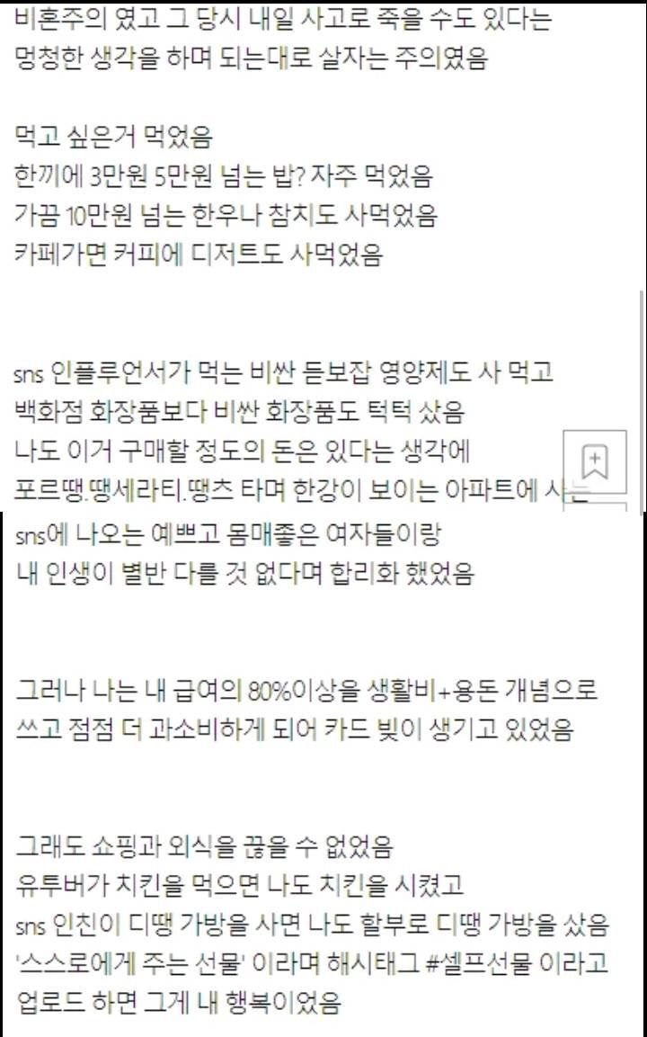 이어 “2년 안에 욜로에서 벗어나 다행이라고 생각한다. 현실을 직시하지 못했다면 빚을 감당하지 못했을 것”이라고 덧붙였다.