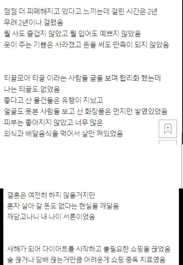 결국 서른살 새해가 되었을 때 A씨는 다이어트를 시작하고, 쇼핑 중독 치료를 받았다.