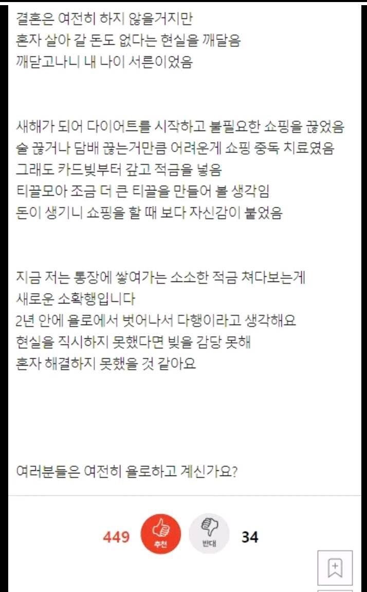 YOLO 생활을 후회한다는 누리꾼의 사연이 화제를 모으고 있다.