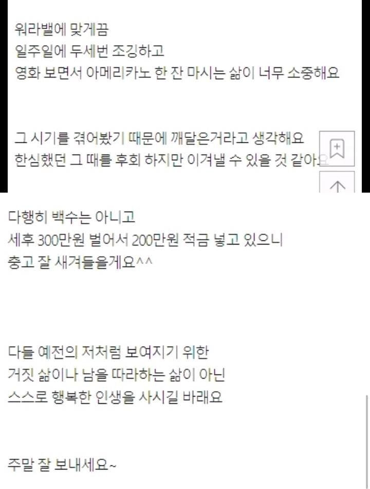 사연을 확인한 누리꾼들은 “세후 300인데 카드 빚이 생길 정도면 많이 쓰긴 했네”, “경험해보고 아니란 걸 알앗으니 앞으로 인생 알차게 살겠네” 등의 반응을 보였다.