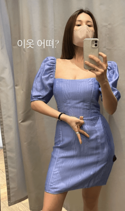사진 속 아이비는 몸매 선이 강조되는 푸른색 원피스를 입고 “이 옷 어때?”라는 글을 남겼다.