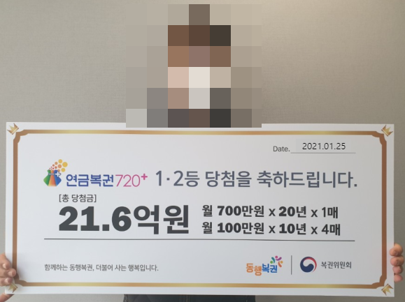 A씨는 전북 전주시의 한 복권판매점에서 연금복권을 구매해 총 당첨금 21.6억 원에 당첨됐다.