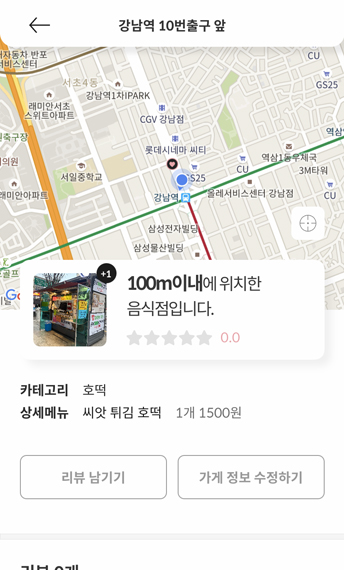 리뷰 시스템도 있어 어떤 붕어빵집이 더욱 맛있는 지도 확인할 수 있다.