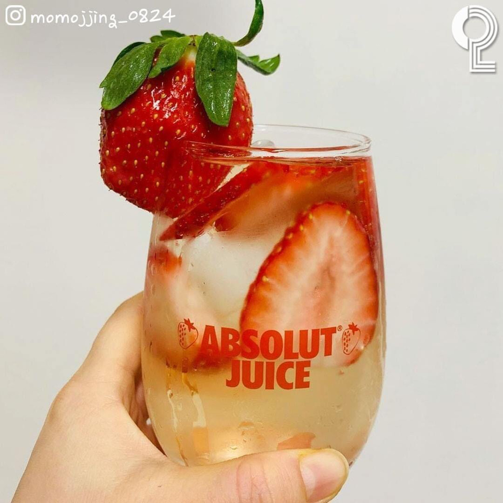 가장 인기있는 조합은 탄산수2:앱솔루트1에 딸기 4조각을 으깨 넣는 것이라고 한다.
