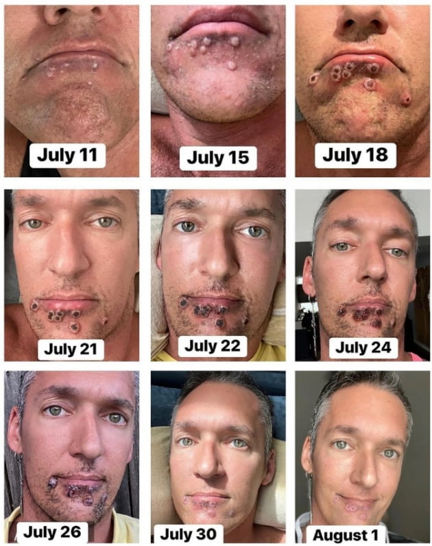 결국 병원에 가서 원숭이두창 확진을 받고 자신의 상태를 사진으로 찍어 기록해왔다.