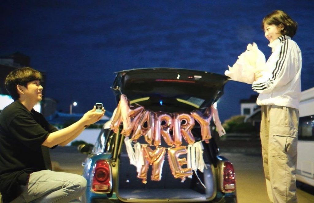 또 차 트렁크에는 ‘Marry Me’라는 풍선이 달려있었다.