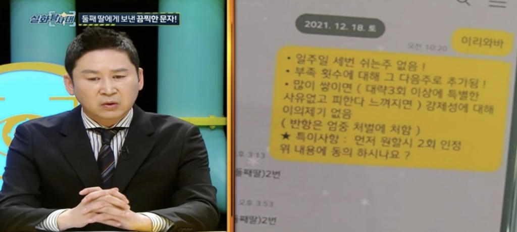 그는 “일주일에 세번 쉬는 주 없음”, “먼저 원할시 2회 인정” 등 딸에게 성관계를 요구하는 노골적인 협박성 메세지를 보냈다.