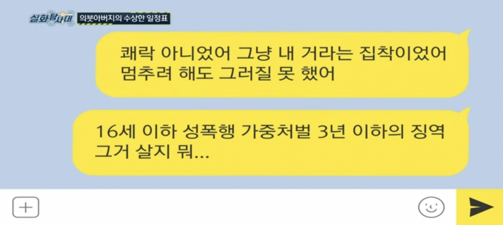 지난 2일 MBC ‘실화탐사대’에 방영된 모두의 분노를 일으킨 친족성폭행 사건 가해자의 추악한 행동이 또 밝혀졌다.