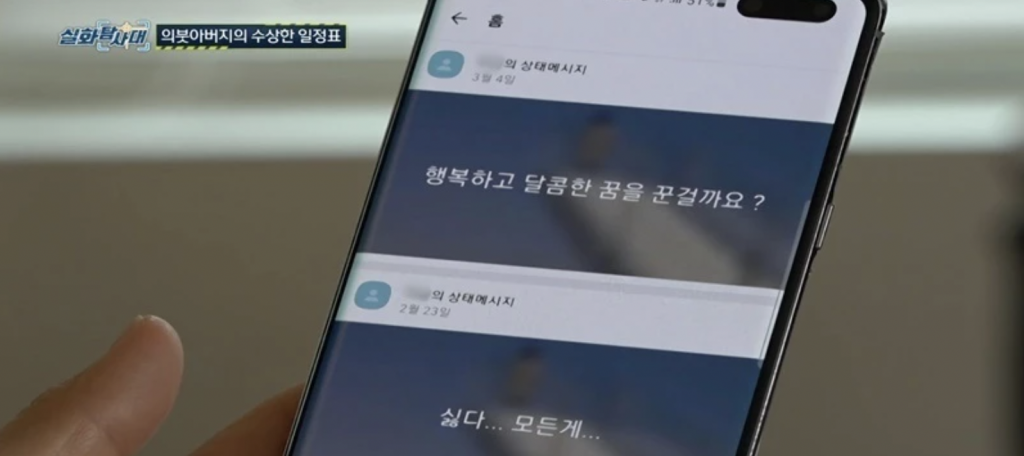 하지만 A씨는 아내인 B씨와 아이들에게 계속해서 메세지를 보내고 있다.