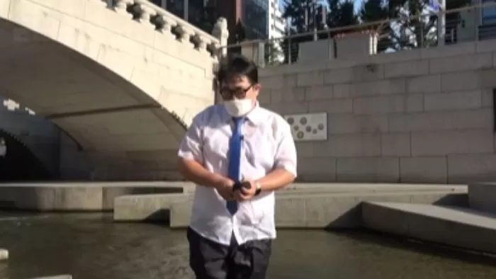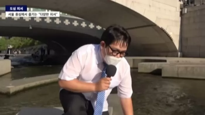 뉴스 리포터가 피서 소식을 전하다 청계천에 빠지는 돌발 사고가 발생해 화제가 되고 있다.