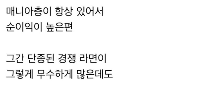 라면 시장에서는 경쟁이 굉장히 치열하기에 소리 소문없이 단종되는 경우를 흔하게 찾아볼 수 있다.