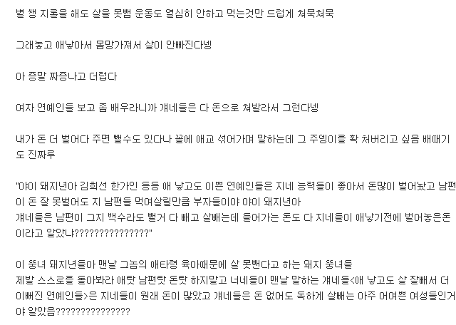 한 커뮤니티에 ‘애낳고 뚱녀된 마누라 정말 싫다’ 라는 글이 올라와 화제가 되었다.