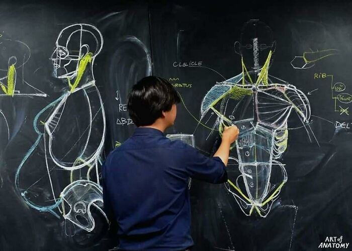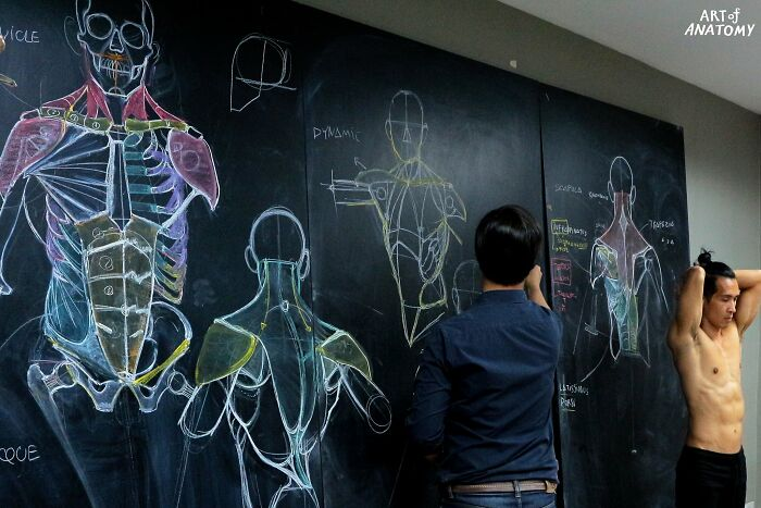 태국에서 ‘해부학 아트 아카데미(ART of Anatomy Academy)를 운영하고 있는 화가 완나릿(Wannarit)는 기술적인 해부학 그리기 수업을 진행한다.