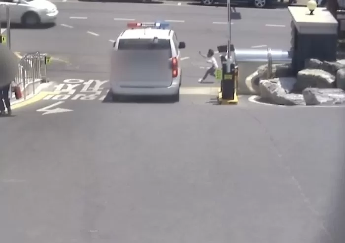 공개된 영상을 보면 경찰차 한 대가 저속으로 경찰서를 빠져나가고 있었고, 경찰차가 우회전 하는 순간 아이와 충돌했다.