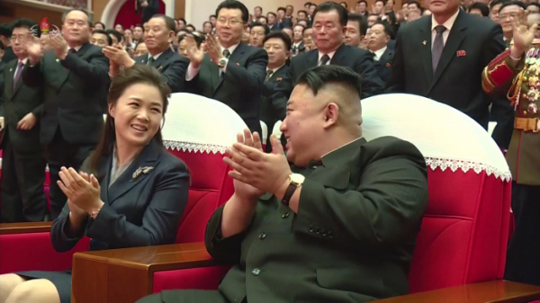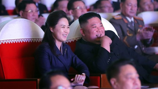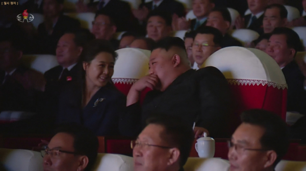 18일 조선중앙TV는 김정은 북한 국무위원장과 부인 리설주 여사가 지난 16일 함께 광명성절(김정일 국방위원장 생일) 기념공연을 관람했다고 보도했다.