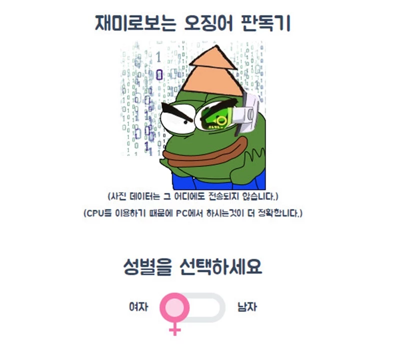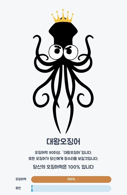 사진을 올리면 오징어력과 휴먼력이 1~3초안에 분석되어 나온다. (오징어 테스트 링크)