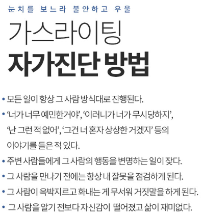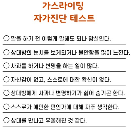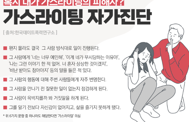 가스라이팅이란 스스로의 판단력을 의심하도록 만들어서, 판단을 다른 사람에게 의존하도록 만드는 행위를 의미하는 말로, 학술적인 용어는 아니며, 일종의 유행어 성격을 띈다.