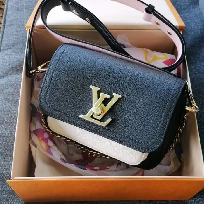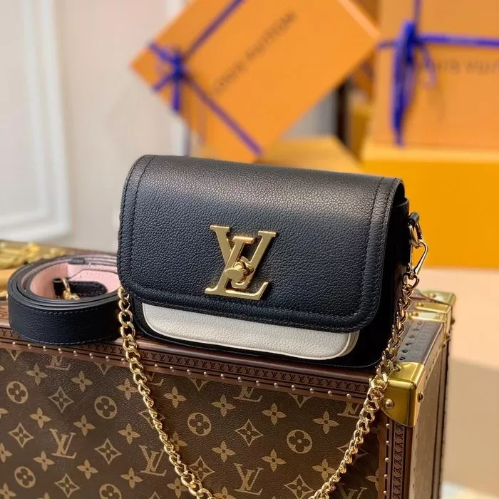 이름에서 알 수 있듯 로고에 잠금 장치가 있는 것이 특징이며, 부드러운 그레인 송아지 가죽에 반짝거리는 골드 톤 체인과 로고가 눈에 띈다.