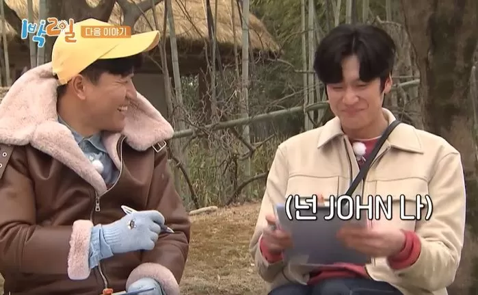 김종민은 갑자기 나인우의 영어 이름을 궁금해 했고, 나인우는 ‘JOHN NA'(존나)라고 자신의 영어 이름을 말해 멤버들은 물론 시청자들까지 빵 터지게 만들었다.