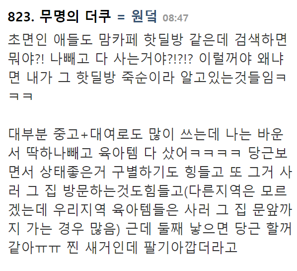 .”, “근데 애들 훅훅 커서 얼마 못써..중고 추천”등의 다양한 반응을 보였다.