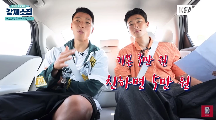옆에 있던 조규성이 “저는 7만 원이라고 들었다”고 말하자 황희찬은 “10만 원이다.