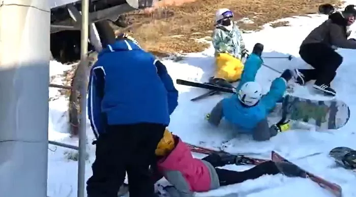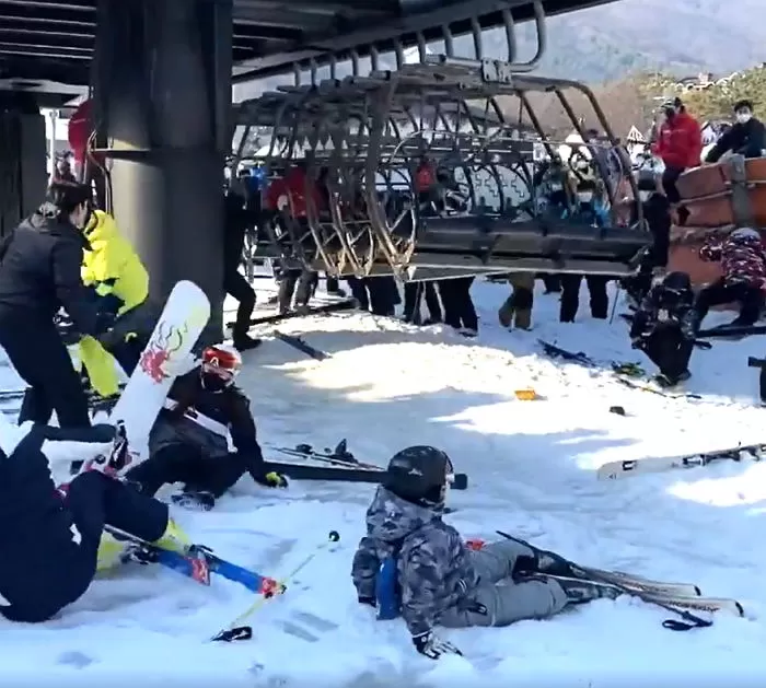 리프트에서 미처 뛰어내리지 못한 일부 탑승객들은 출발 지점에 있던 리프트와 역주행하는 리프트 사이에 끼어 부상을 입었다.