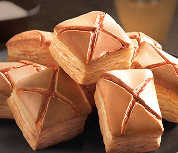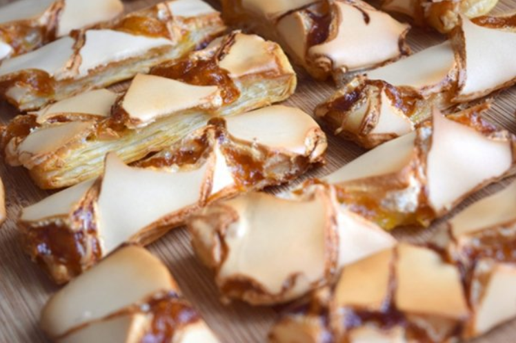 퍼프 페이스트리 위에 머랭을 바르고 살구 잼을 짜서 선을 그리고 구운 스폴리아티네 글라사테(sfogliatine glassate)라는 이탈리아 과자가 원조이다.