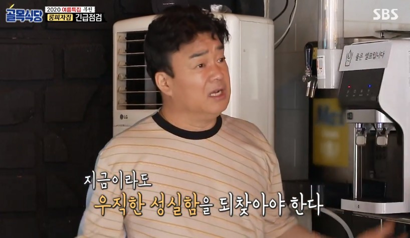 백종원은 “세상에. 이거 숟가락 좀 봐라. 이게 말이 되냐”라며 “정수기 옆이라 손님들도 잘 보이는 곳에”라며 탄식을 금치 못했다.