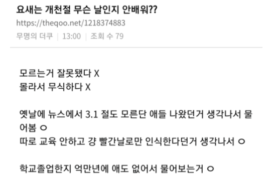 논란되는 것 자체가 충.격적이었던 ‘기본 상식들’.jpg 최근 국내 온라인 커뮤니티에 ‘논란이어서 충격적이었던 상식.jpg’이라는 제목의 게시글이 올라와 네티즌들 사이에서 갑론을박이 벌어지고 있다. ADVERTISEMENT ADVERTISEMENT 온라인 커뮤니티 ADVERTISEMENT 온라인 커뮤니티 ADVERTISEMENT point 0 | 온라인 커뮤니티 point 57 | 온라인 커뮤니티 point 114 | ADVERTISEMENT point 0 | 온라인 커뮤니티 point 57 | 온라인 커뮤니티 point 114 | ADVERTISEMENT point 0 | point 50 | point 100 | 1 온라인 커뮤니티 ADVERTISEMENT 온라인 커뮤니티 ADVERTISEMENT 온라인 커뮤니티 ADVERTISEMENT 온라인 커뮤니티 ADVERTISEMENT 온라인 커뮤니티 ADVERTISEMENT 온라인 커뮤니티 온라인 커뮤니티 ADVERTISEMENT 온라인 커뮤니티 ADVERTISEMENT 온라인 커뮤니티 ADVERTISEMENT 온라인 커뮤니티 ADVERTISEMENT 온라인 커뮤니티 온라인 커뮤니티 ADVERTISEMENT 온라인 커뮤니티 ADVERTISEMENT 온라인 커뮤니티 ADVERTISEMENT 온라인 커뮤니티 ADVERTISEMENT 온라인 커뮤니티 온라인 커뮤니티 ADVERTISEMENT 해당 게시물 작성자는 글의 말미에 “몇 개는 좀 심각한데.. 까먹었을 수도 있고, 처음부터 몰랐을 수도 있는데 모르면 부끄러워하고 배우려 하는 게 아니라 진심으로 화내는 사람이 많은 것 같다”라며 의견을 덧붙였다. ADVERTISEMENT 온라인 커뮤니티 ADVERTISEMENT [저작권자 NEWSNACK/ 무단복사, 무단전재 및 재배포 금지 (위반 시 법적조치)]