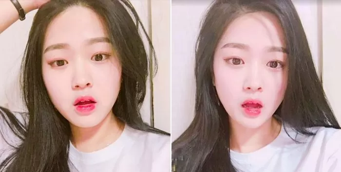 고3 사진에 이어 2014년 18살(고2) 당시 모습도 공개됐는데, 빼곡한 앞머리에 갈색 생머리를 하고 있다.