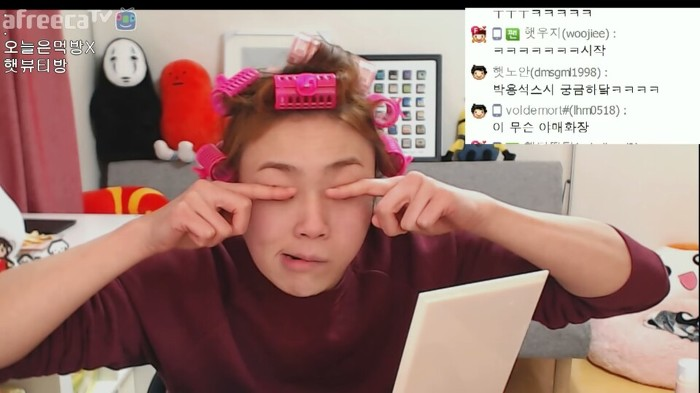 햇님은 “그럼 전 뭘 먹어야되냐”고 설명하며 먹방 대신 뷰티방송을 시작했다.