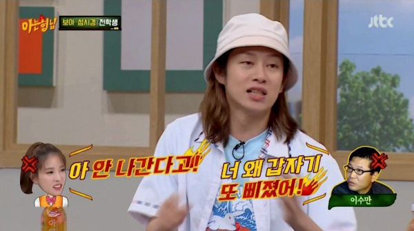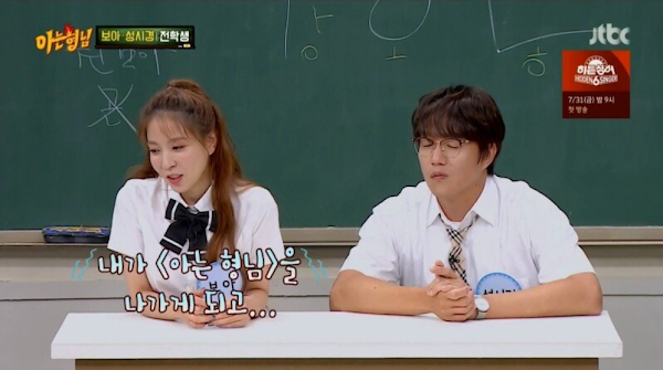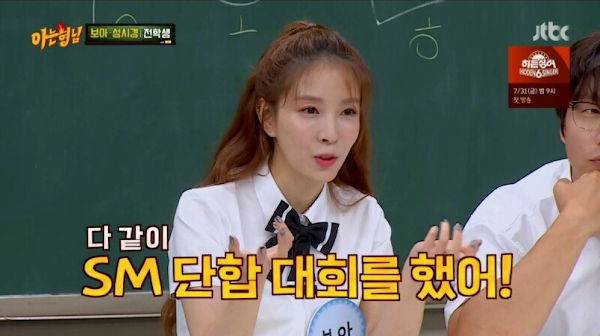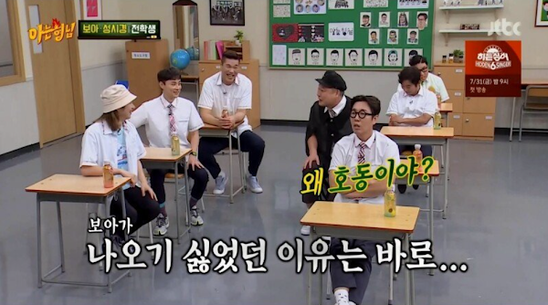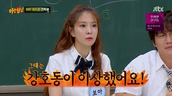 보아는 “난 사실 호동이를 아는 형님 나오기 전부터 안 좋아했어”라고 말했고 “호동이가 처음에 SM 들어와서 단합대회했어”라고 밝혔다.