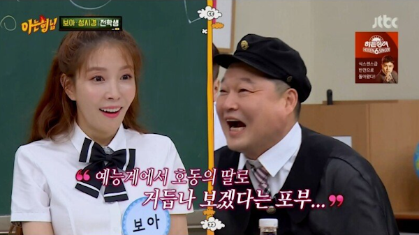 이어 “내가 먼저 아는 척을 했는데 인사도 안하고 가는 거야”라고 밝혀 강호동을 재차 당황하게 만들었다. 하지만 보아는 “오늘부터 강호동의 딸이 될게”라고 훈훈하게 마무리했다.