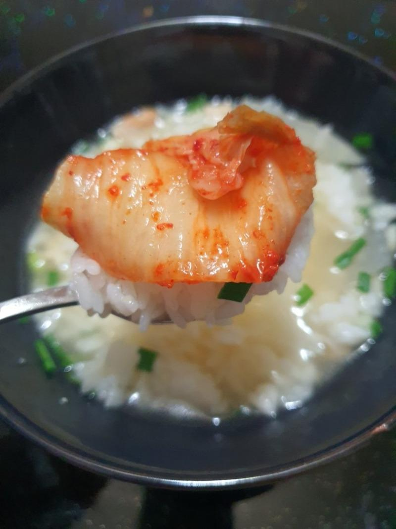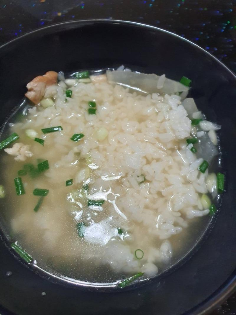 그가 공개한 사진 속에는 먹음직스러운 국밥으로 변한 치킨의 모습을 확인할 수 있다.