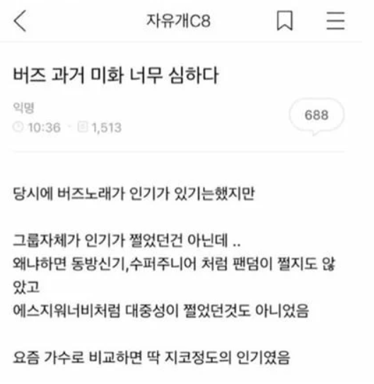 그런데 최근 온라인 커뮤니티에 “버즈 과거 미화 너무 심하다”라는 글이 올라와 사람들에게 충격을 주었다.
