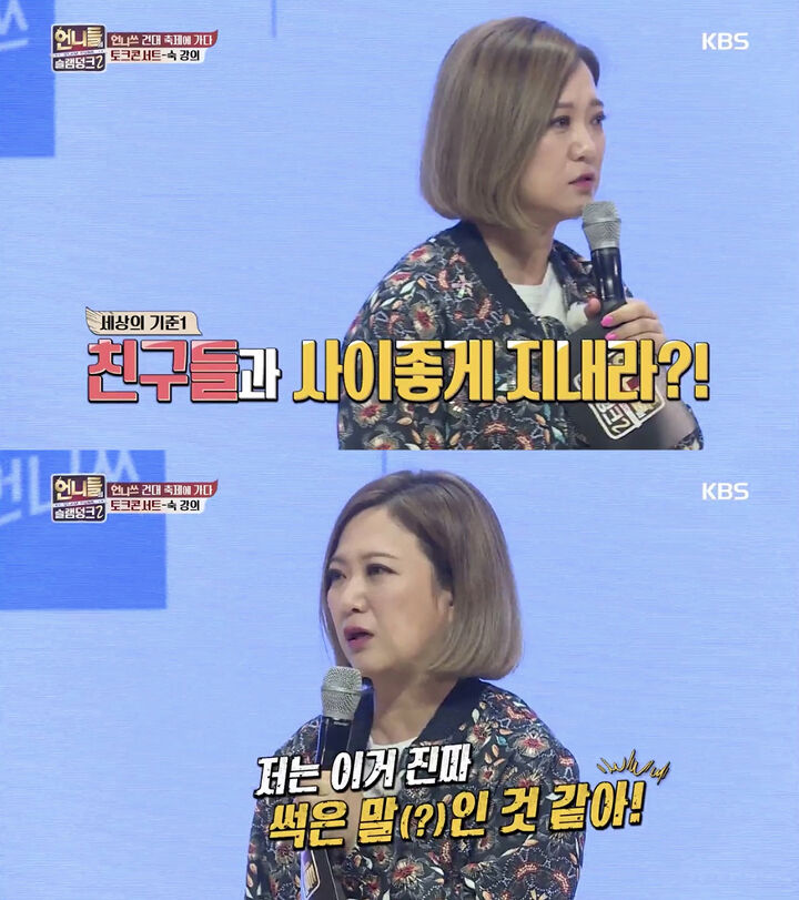 김숙은 “친구들과 사이좋게 지내라? 저는 이거 진짜 썩은 말인 것 같다”고 꼬집었다.