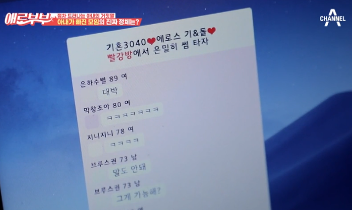 지난 18일 채널A ‘다시 뜨거워지고 싶은 애로부부(이하 애로부부)’에서는 ‘기혼 전용 썸 대화방’ 관련 사연이 전파를 탔다.