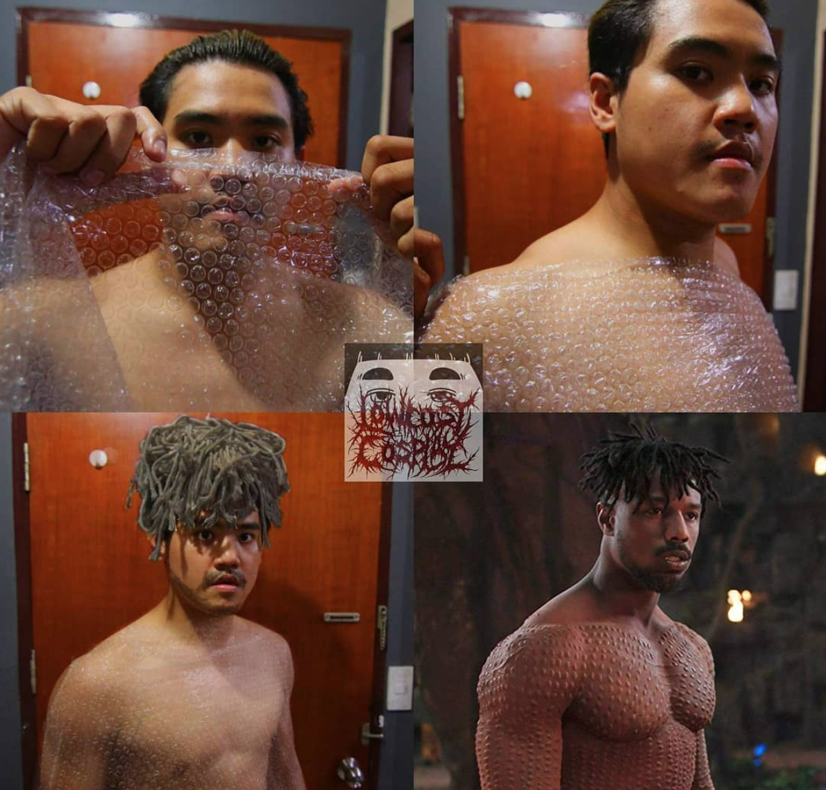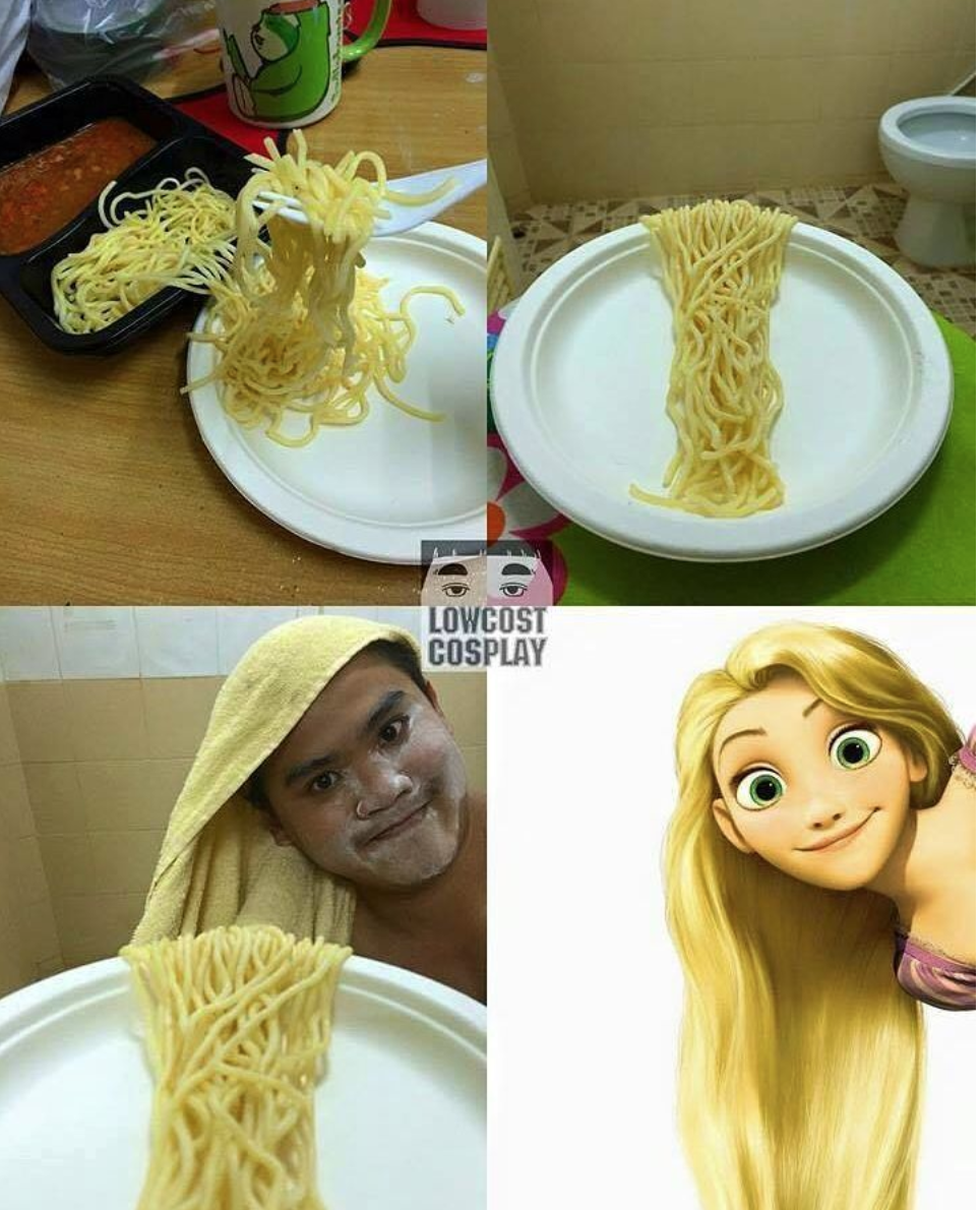 벨트, 가발, 테이프, 빨래집게를 이용해 그럴듯 한 코스프레를 해내는데, 누리꾼들은 대단하다고 입을 모아 칭찬한다.