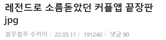 최근 한 국내 온라인 커뮤니티에 ‘레전드로 소름돋았던 커플앱 끝장판.jpg’이라는 제목의 게시글이 올라와 네티즌들의 이목을 끌었다.