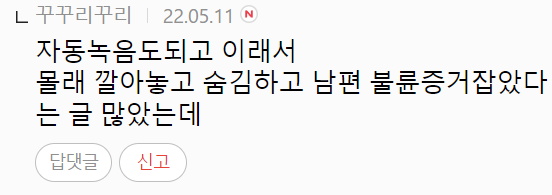 해당 게시물을 접한 네티즌들은 “저런 게 진짜 있었다니 너무 소름돋는다”, “초딩 때 남자친구랑 했었는데 문자 내용도 볼 수 있다”, “자동녹음 기능으로 불륜 잡은 사람도 있다더라” 등의 반응을 보였다.
