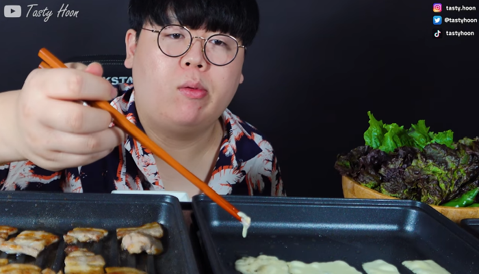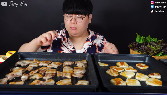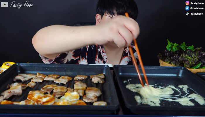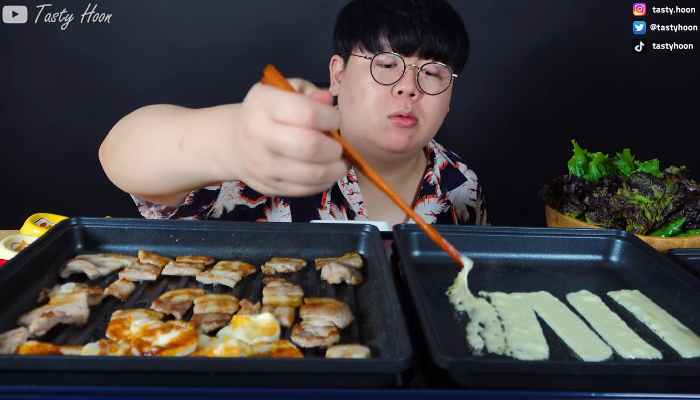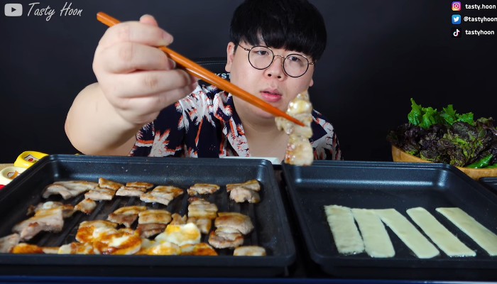 지난 9일 테스터훈의 먹방 전문 유튜브 채널 ‘Tasty Hoon 테이스티훈’에는 치즈와 삼겹살, 된장찌개를 먹는 영상이 올라왔다.