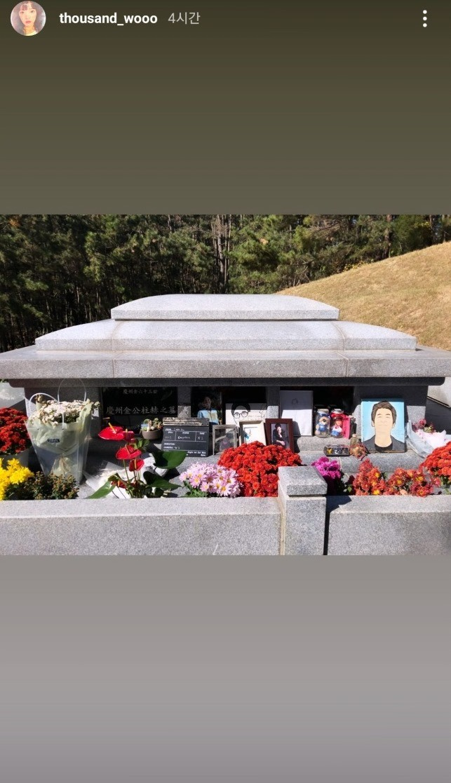 지난 4일 천우희는 자신의 인스타그램 스토리에 고 김주혁의 장지를 방문한 사진 한 장을 게재했다.