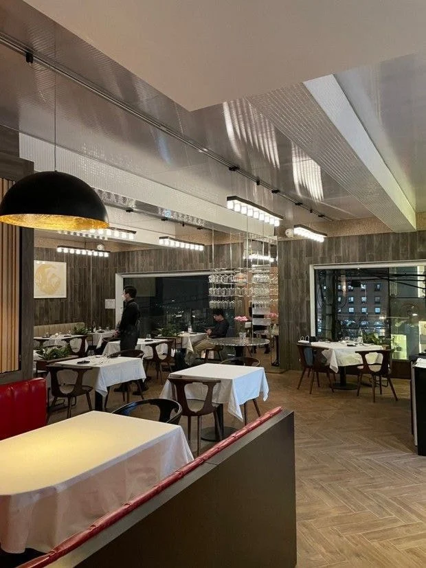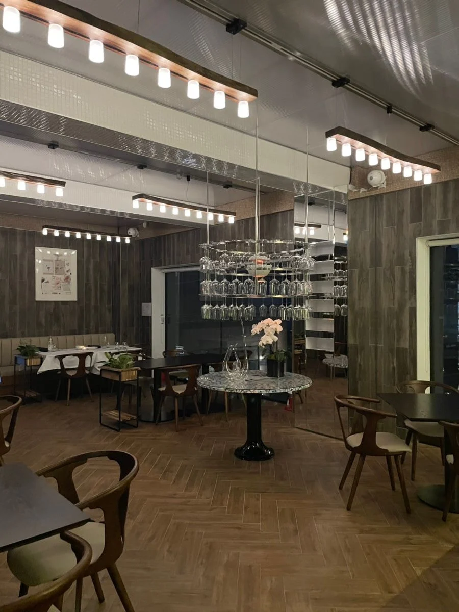 2층으로 된 고급 레스토랑은 깔끔한 디자인을 자랑했다.