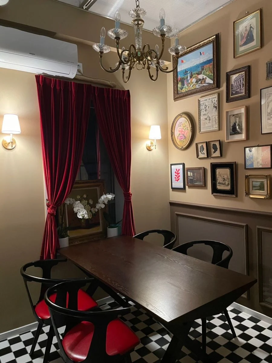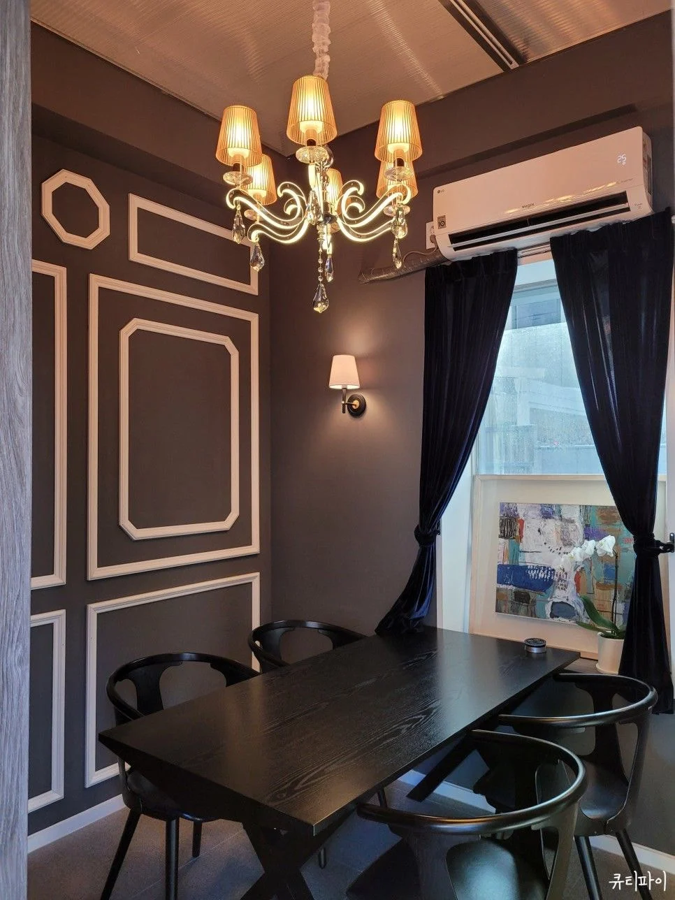 곳곳에 유명 작가의 그림이 걸려 있으며, 오픈형 주방을 차용했다.