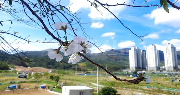 벚꽃이 때아닌 가을에 활짝 꽃을 피웠다.