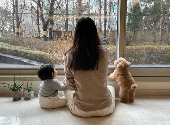 그녀가 가장 먼저 올린 사진은 바로 딸, 반려견과 함께한 평화로운 일상이었다.